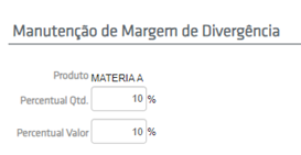 Para este exemplo, definiu-se uma margem de divergência de 10% para quantidade e valor conforme ilustra a imagem abaixo: